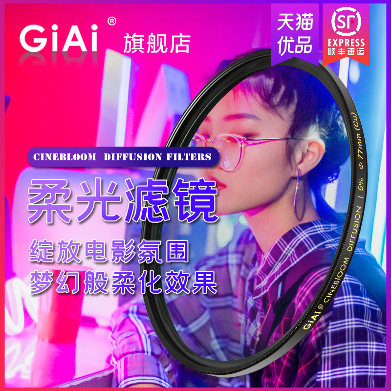 GiAi Jiai black soft filter soft light mirror CINEBLOOM soft light filter portrait film video live beauty skin microdermabrasion filter suitable for Canon Nikon Sony Fuji Apple mobile phone filter