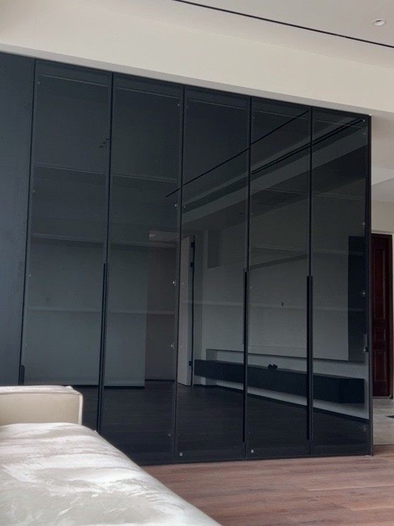 Wardrobe door panel custom minimalist Changhong cabinet door overall cabinet brown glass custom-made extremely narrow aluminum alloy wine cabinet bookcase
