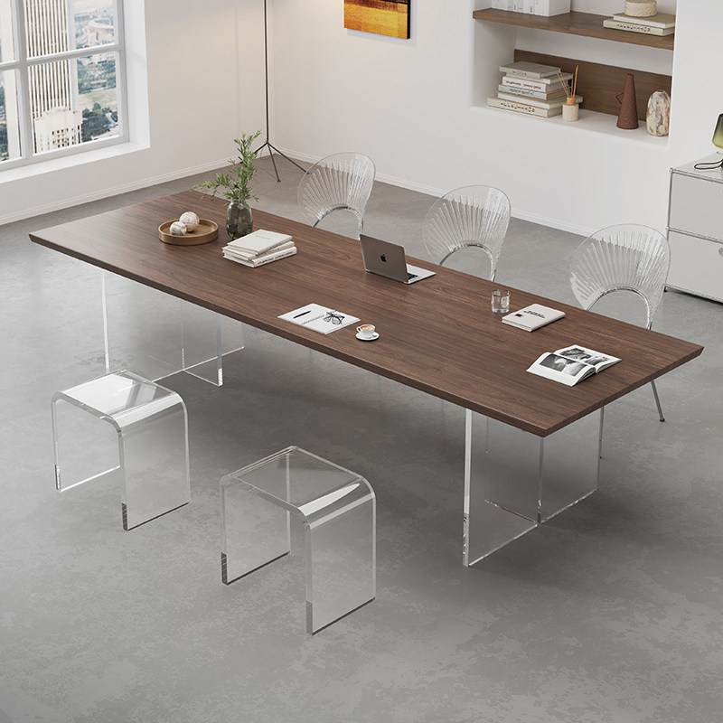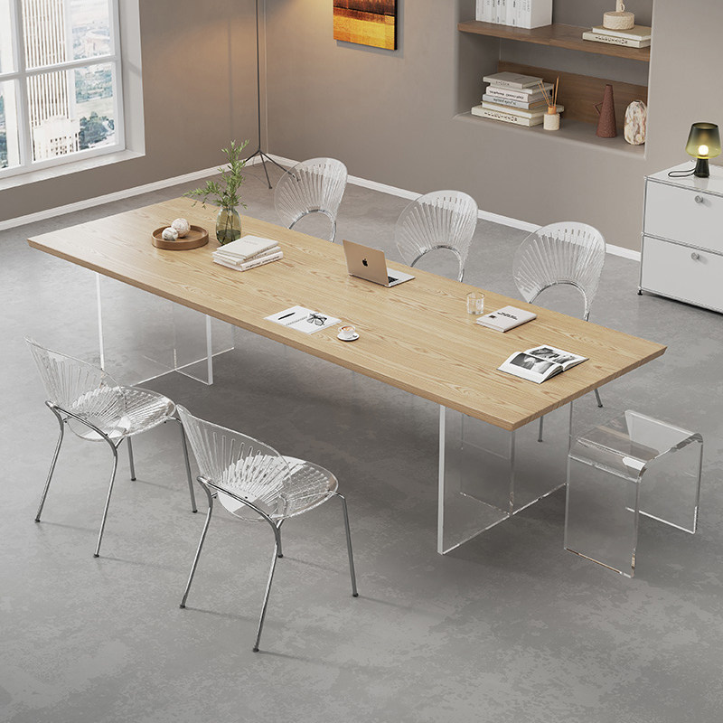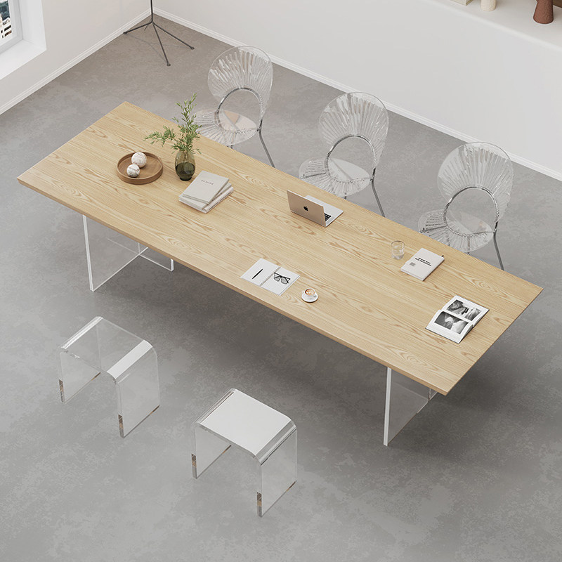 Living room solid wood long table workbench simple suspension acrylic conference desk Nordic ash wood meal
