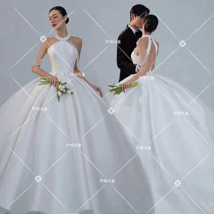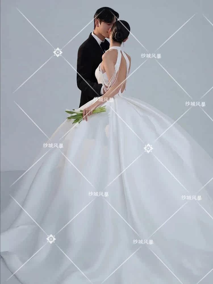Studio indoor magazine style theme clothing Korean wedding photo photography photo photo pure white simple satin dress