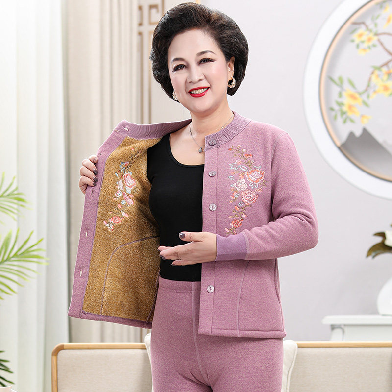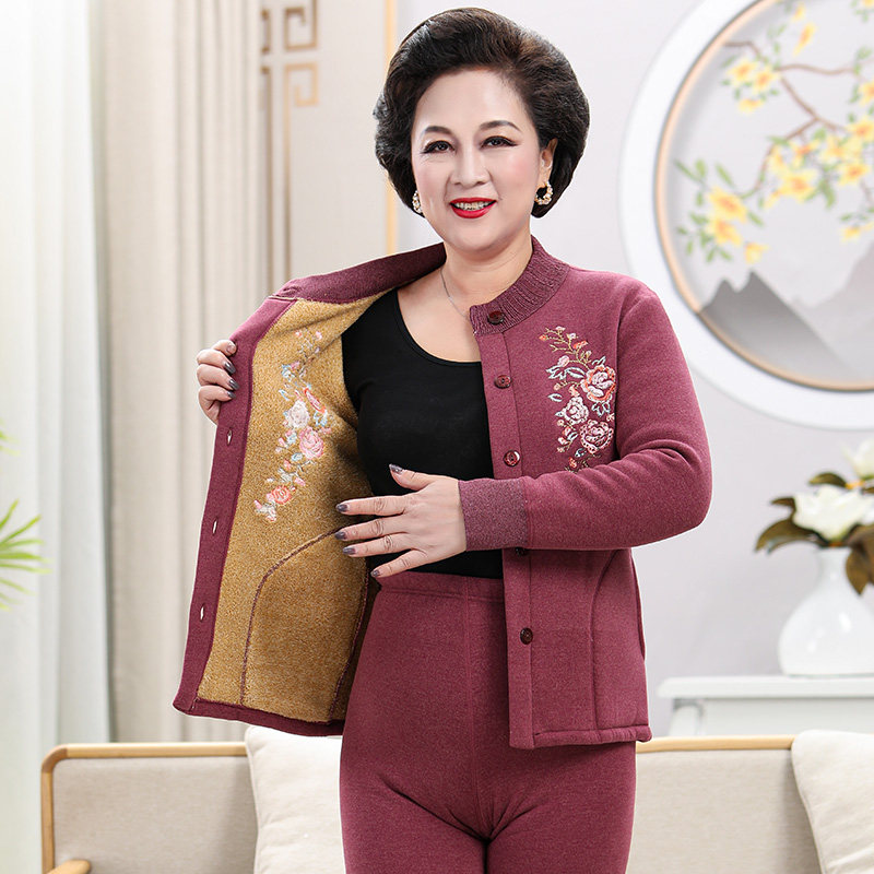Middle Aged Warm Lingerie Women Suit Old Too-shirt mom Gardown thickened with high collar warm clothes Grandmother Winter-Taobao