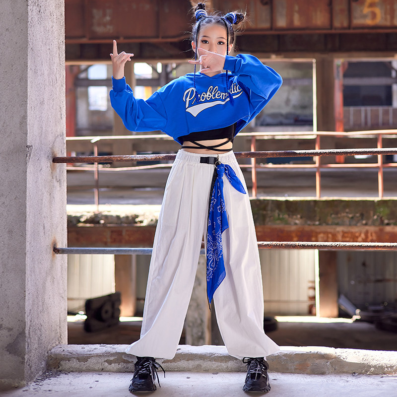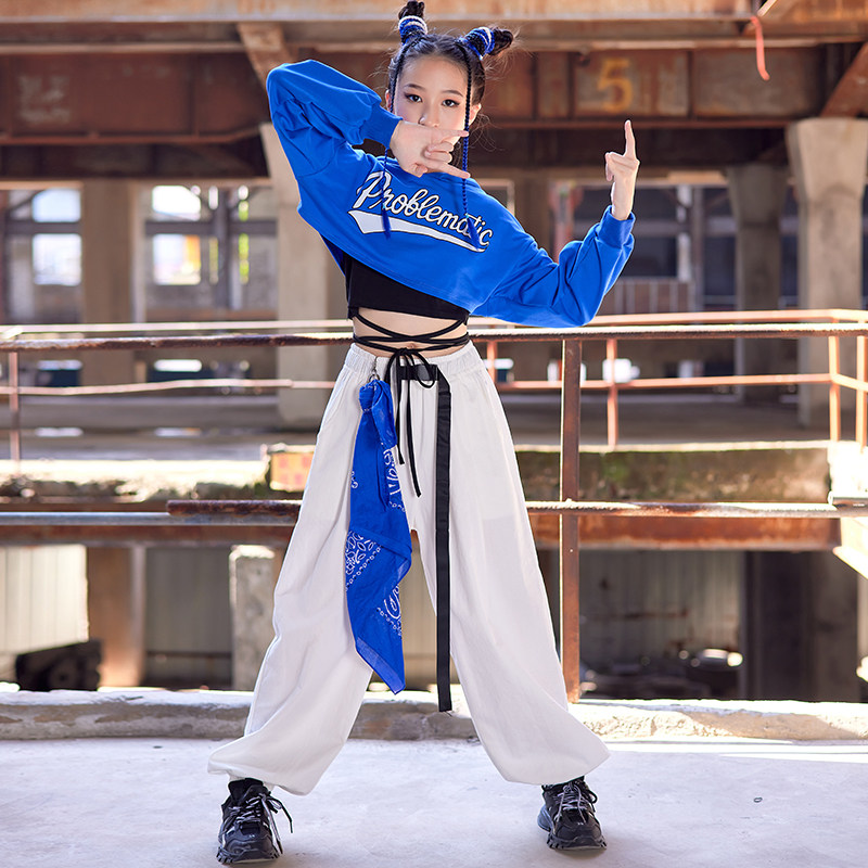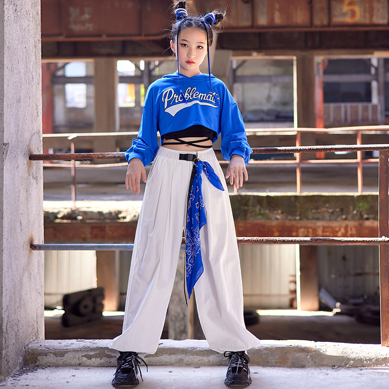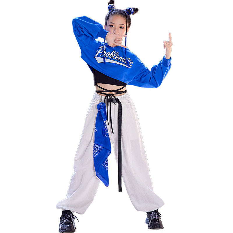 Girls Jazz Dance Clothes Cool Hiphop Street Dance Kits Show Blue Town Dance Costumes