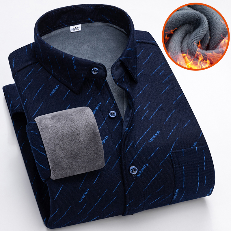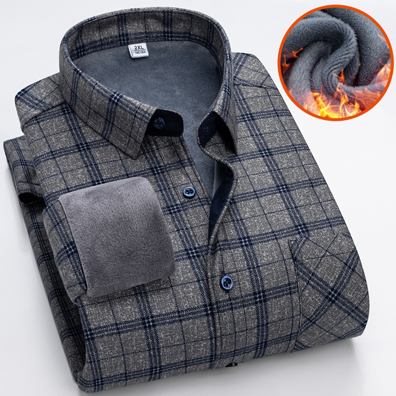 Winter gush warm shirt for men's plaid shirt with long sleeves thickened men's autumn winter middle aged dad fitted-Taobao