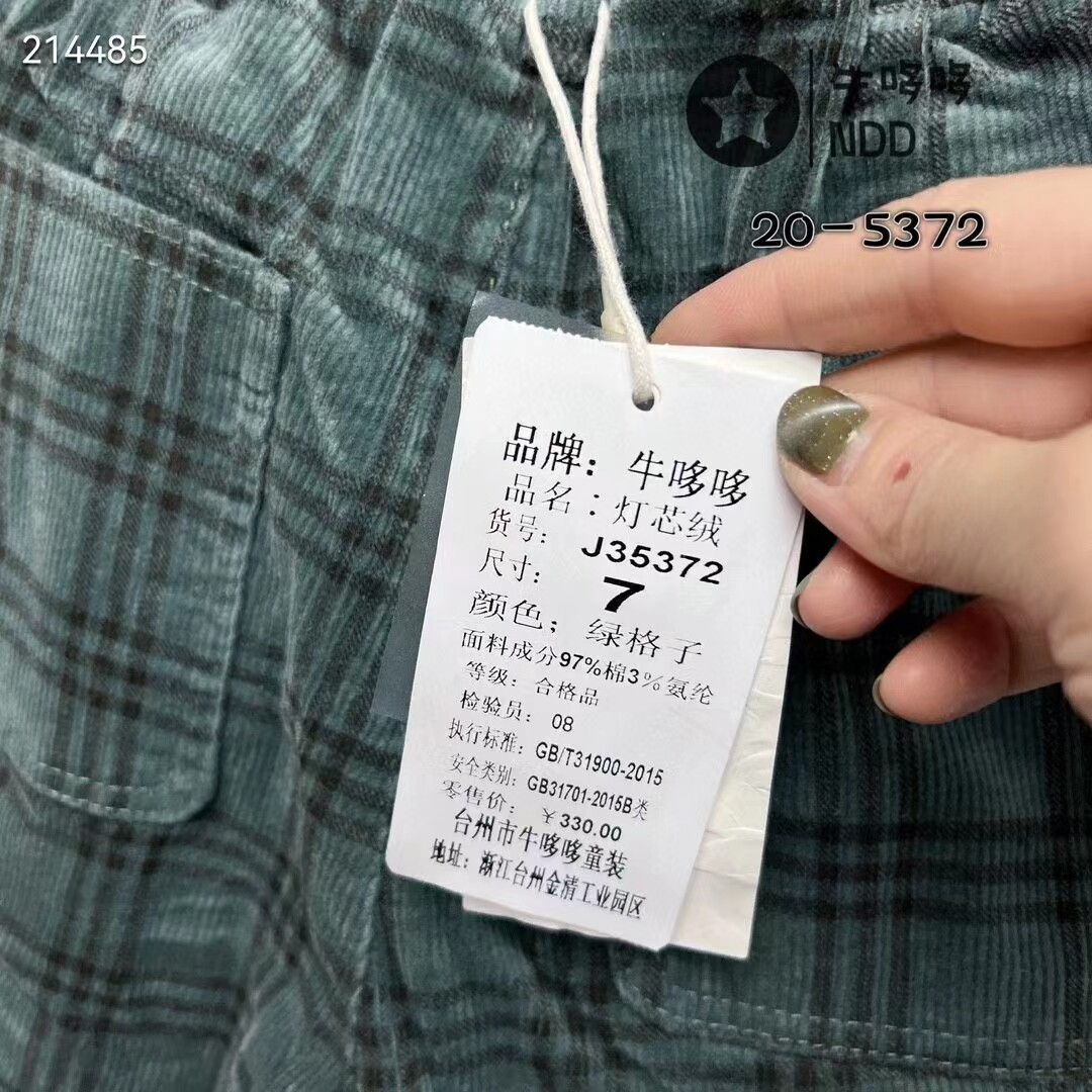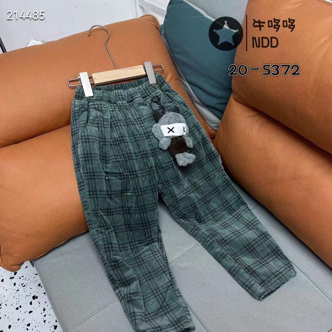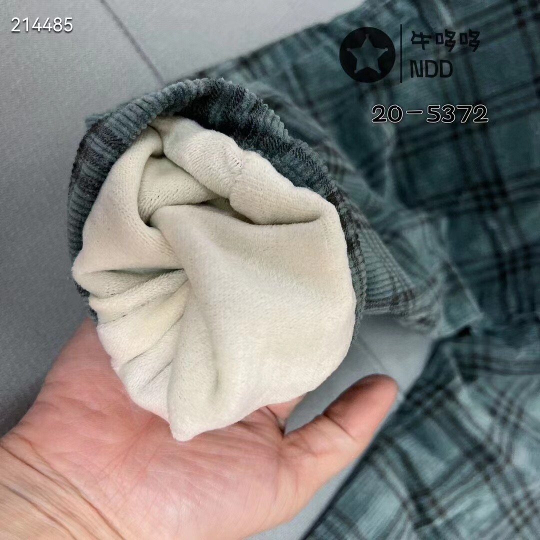 Niuduoduo winter children's middle-aged and older children's plaid double-layer plus velvet thickened warm corduroy casual trousers 3537