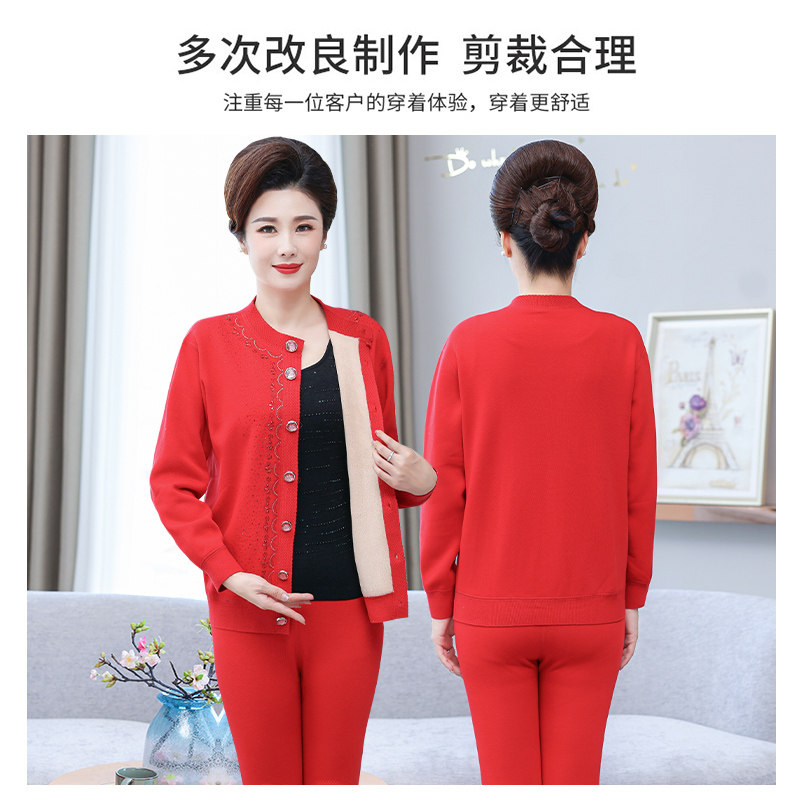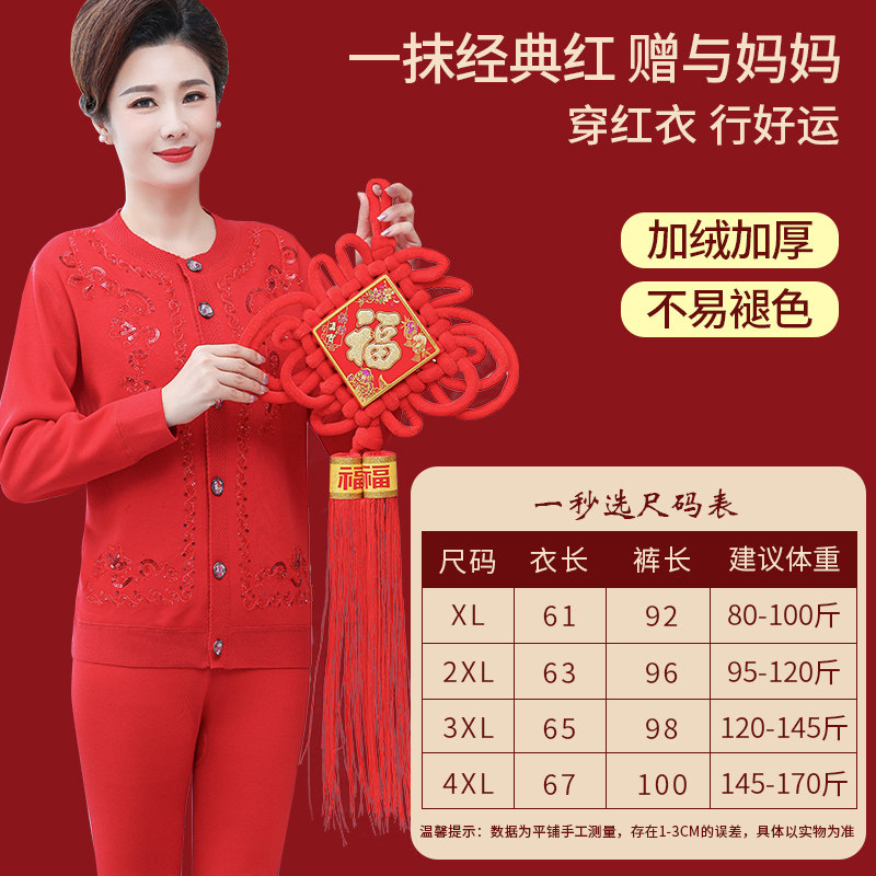 This Life Year Opener Mother's Warm Underwear Suit Winter Middle Aged Red Warm Clothing Women Plus Fleece Thickened-Taobao