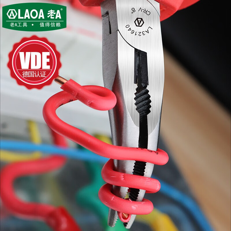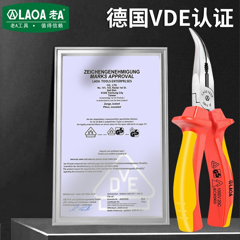 Old A high pressure insulated bent mouth pliers VDE Electrical pliers 1000V German certified 8-inch meniscus-Taobao