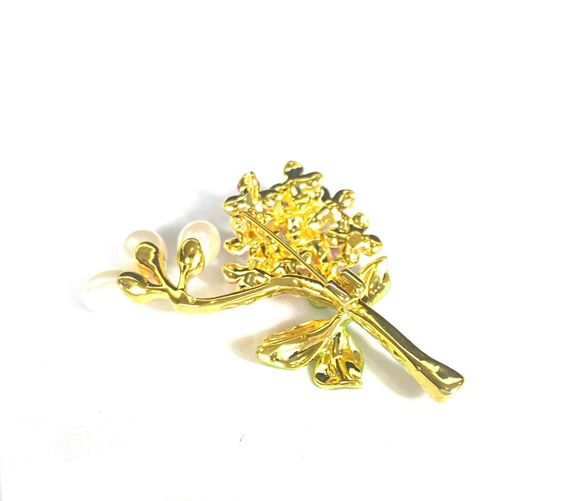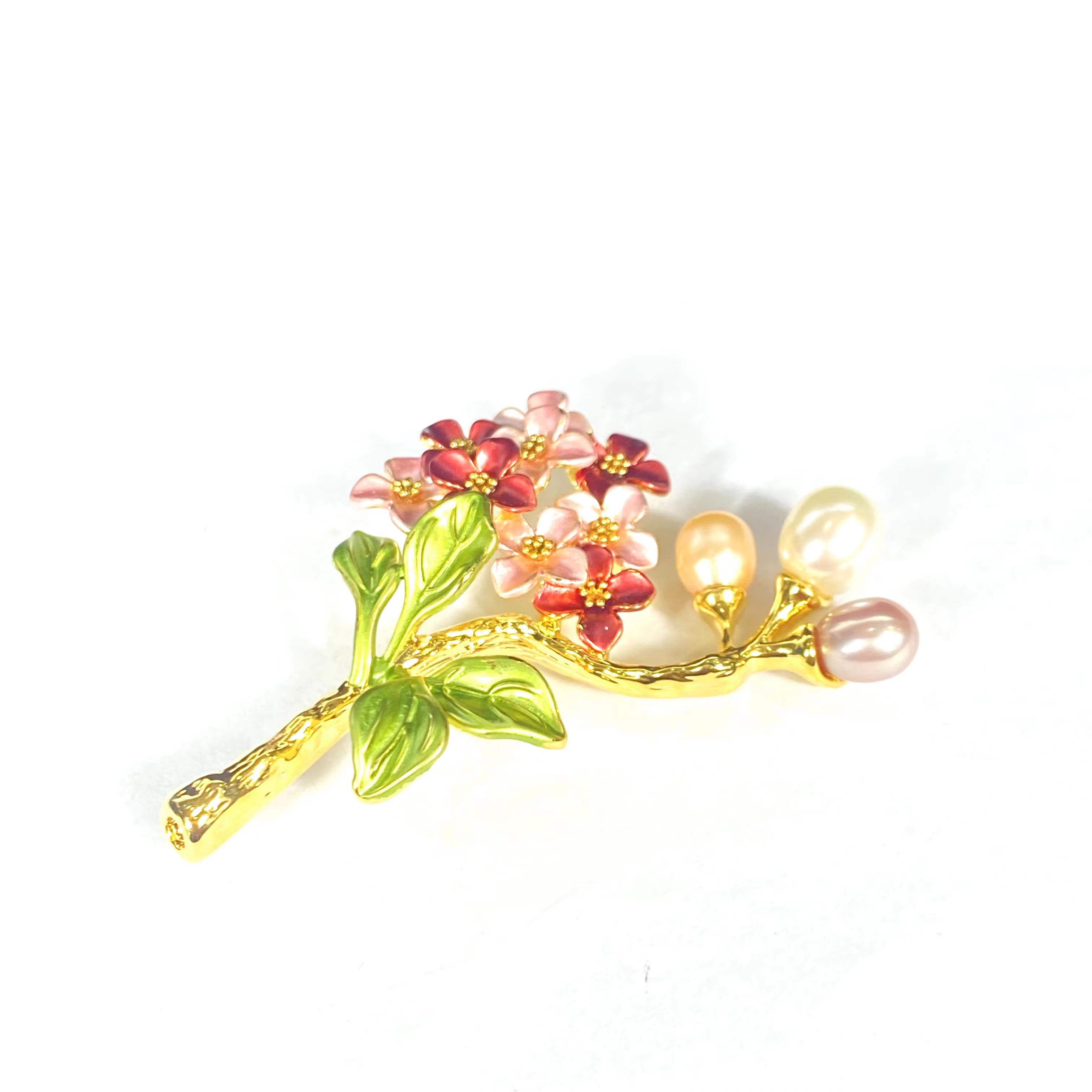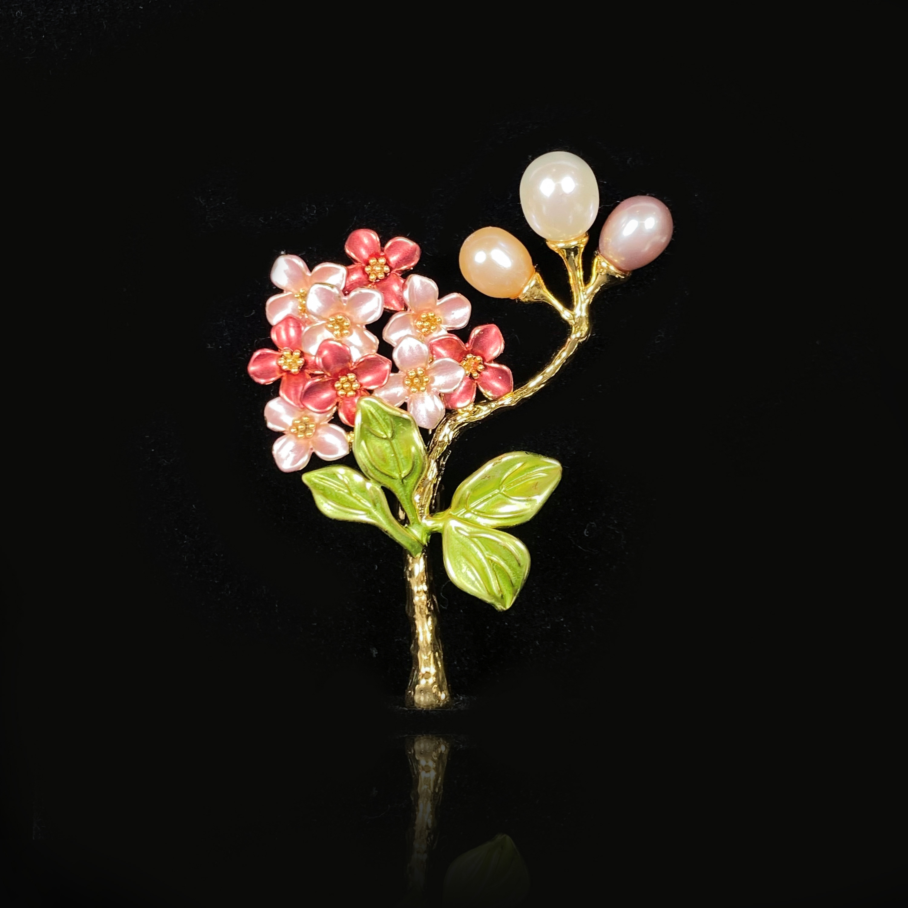 Hong Kong Amberman Freshwater Pearl Color Bead White Bead Cherry Blossom Branch Brooch