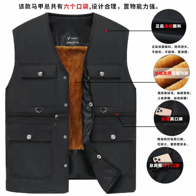 Middle-aged horse vest male thickened cotton vest warm and plush shoulder dad fat and increase the man