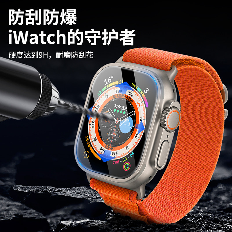 Applicable to AppleWatch Ultra HD glass film Apple Watch Tempered film iWatch full screen covered sapphire purple pack explosion-proof scraper screen without whiteside protection stick