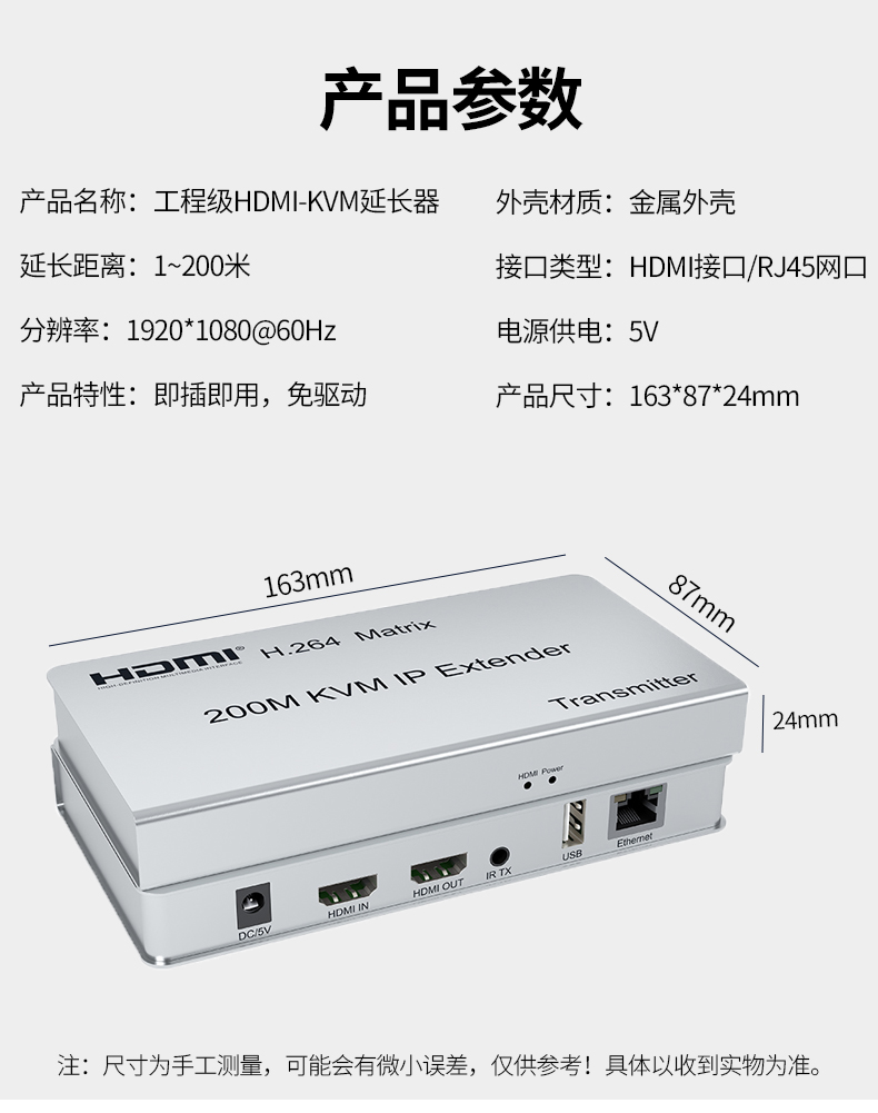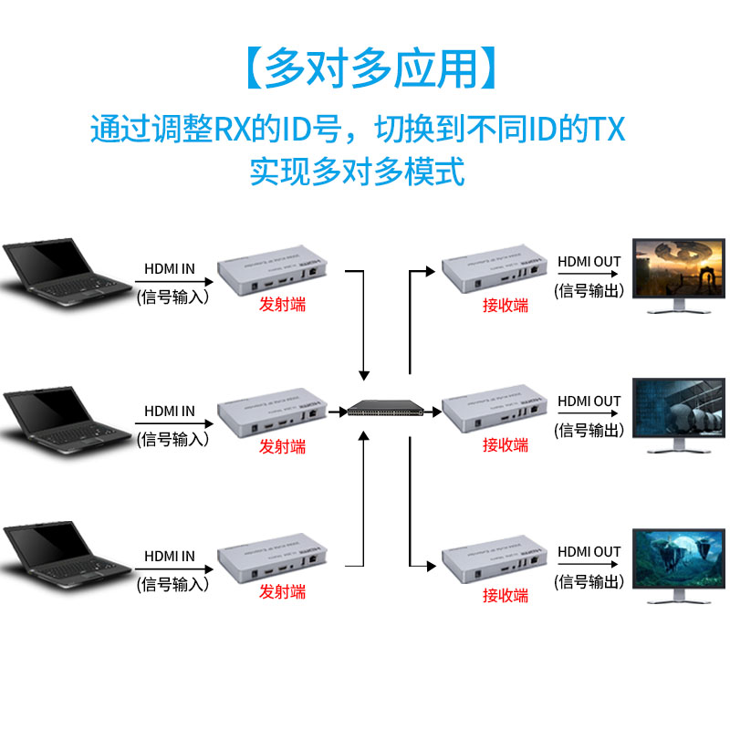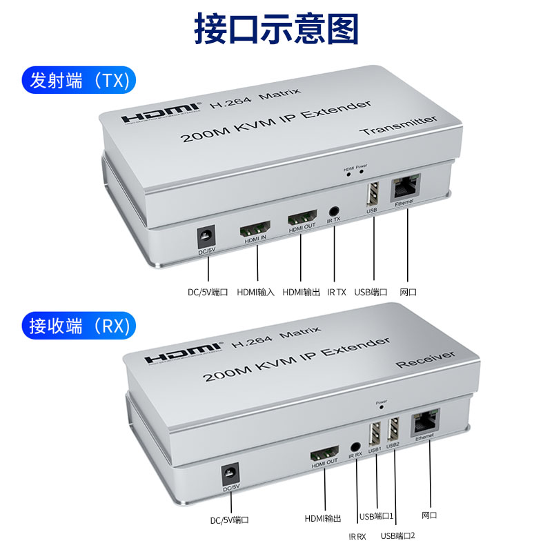 High-definition HDMI KVM extender 200 meters 1-to-many or multi-send multi-receive network cable converter network transmission signal