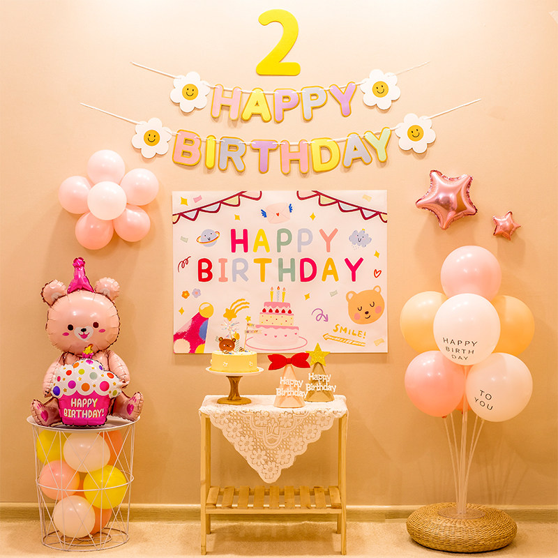 ins birthday decoration scene placement female treasure girl children balloon background wall party scene placement supplies-Taobao