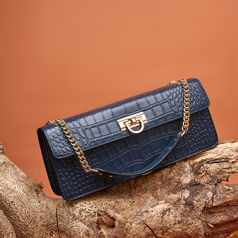 Women's leather crocodile pattern French niche bag 2022 new bag Messenger bag high-end sense all-match chain baguette