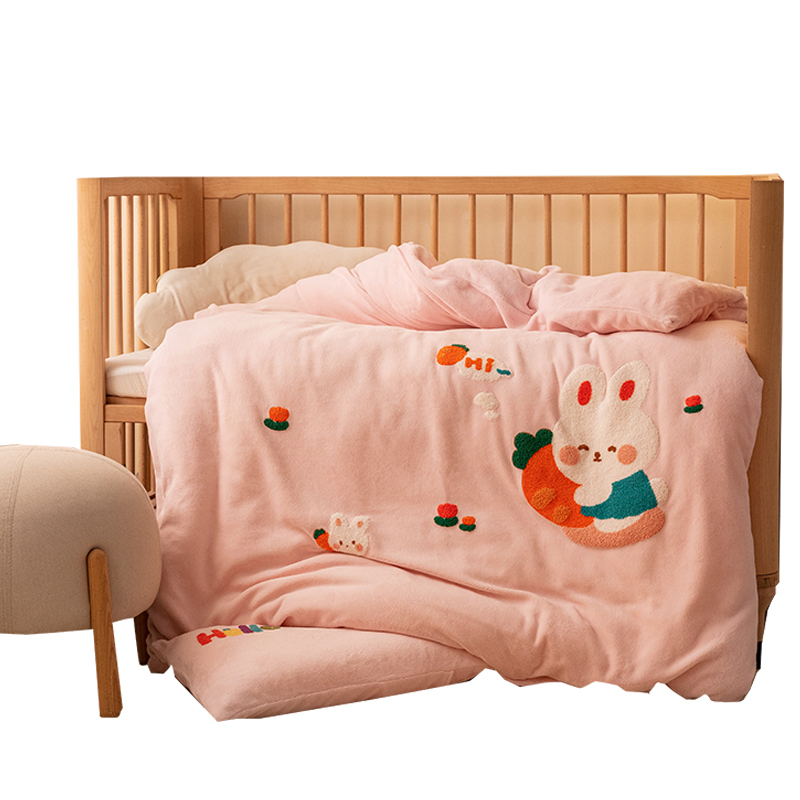 A class kindergarten quilt three pieces of winter baby enter garden special milk coffee suit plus velvet winter bed