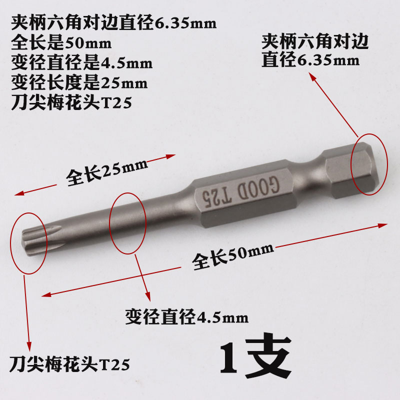 GOOD SH1 4 * 50 * 4 5 * 25 *T25 MeFlower Type Wind Batch Head Plum Blossom Head Batch S2 Of S2 Steel