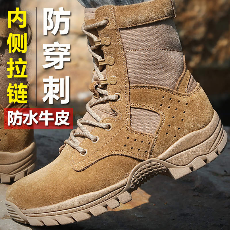 New brown combat boots men's ultra-light waterproof and puncture-proof winter wool zipper cowhide high-top combat training boots