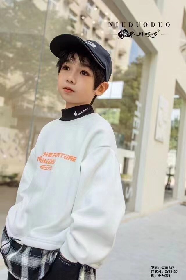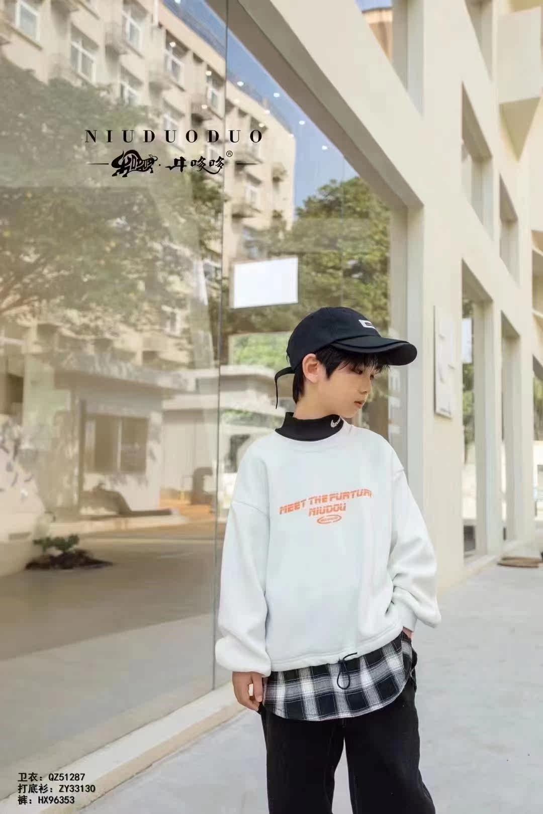 Niuduoduo winter style Korean version of children's middle-aged and older children's hem plaid splicing fake two-piece trendy Fanyang style sweater 51287