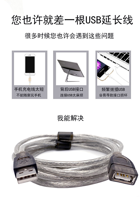KKK printer lengthened connecting line USB data extension line male to mother copper core double magnetic ring 1 5m3m5m10 meter