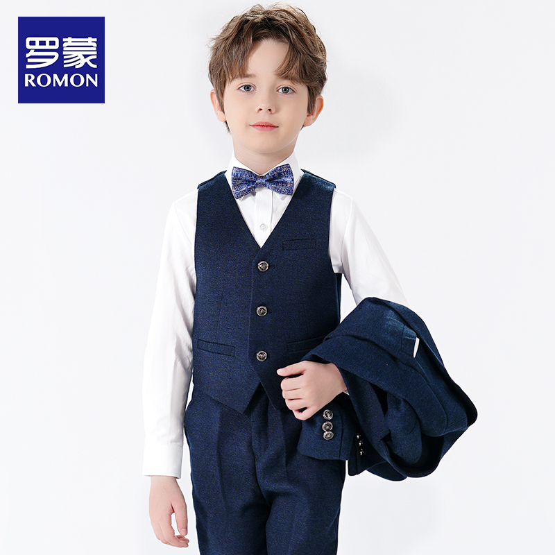Romon Children Suits Suit Boy Flowers Childlike Handsome Young Walking Show Host CUHK Boy Piano Show Gown-Taobao