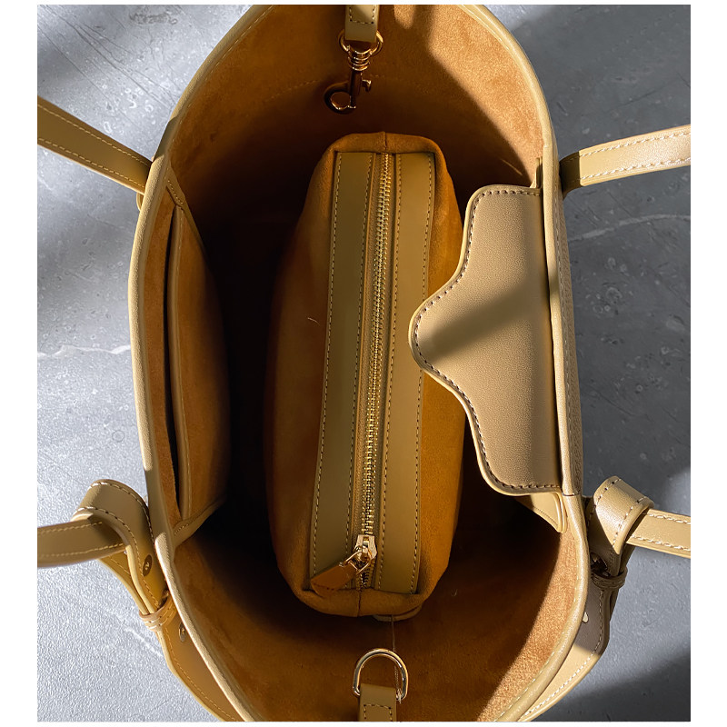 (British AJ AOIRJ) niche autumn and winter cowhide large-capacity bucket bag hand-carrying vegetable basket bag shoulder bag