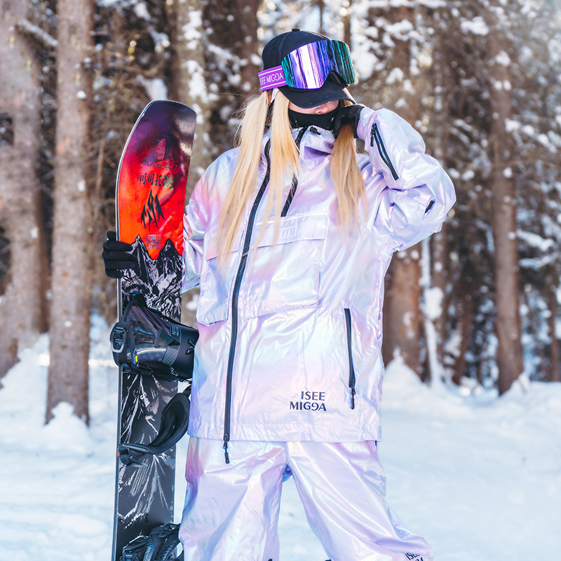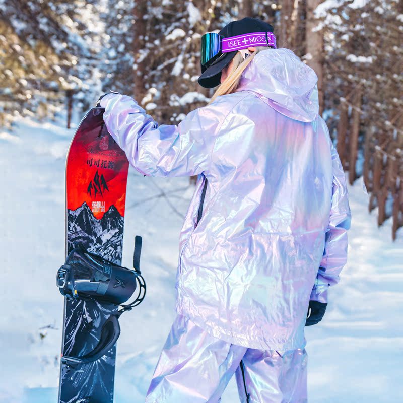 ISEEMIGGA (Dazzling Purple Laser) 3L Snowboarding Suit for Men and Women, Waterproof Jacket