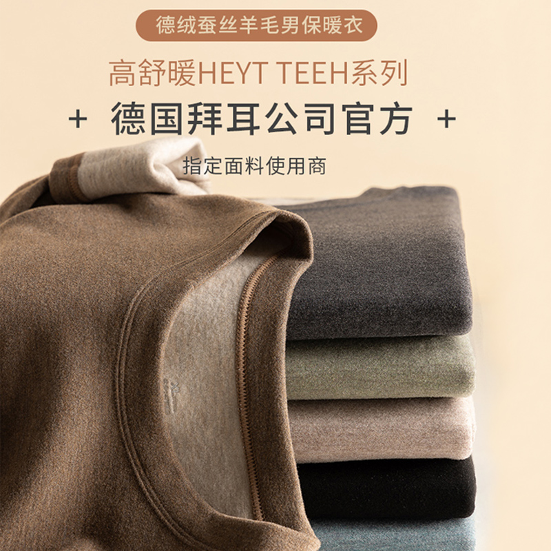 Duvet Warm Underwear Men Suit Small Round Collar Self Heating Plus Suede Thickened Wool Silk Beating Bottom Autumn Clothes Autumn Pants-Taobao