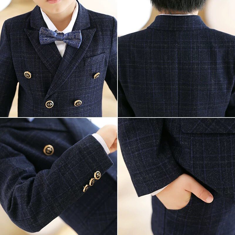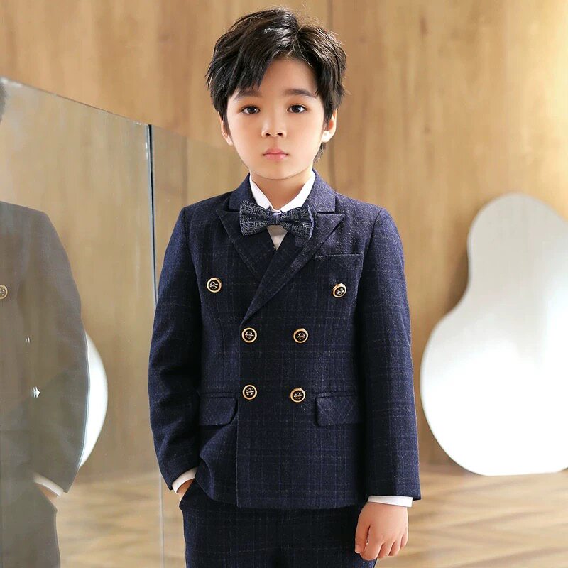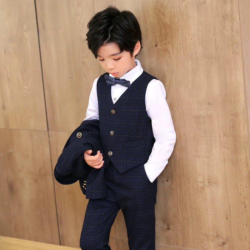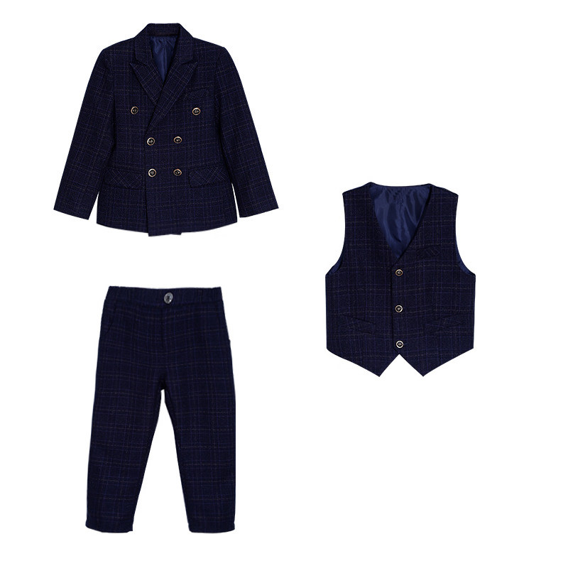 Boy suit three pieces of autumn and winter plus thickening English style plate children's small suit boy flower dress