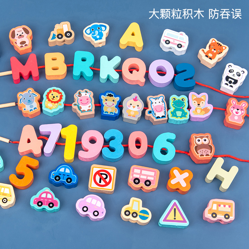 Woody infant Early education Puzzle Children Beads Toys 1-3-year-old baby boy girl a week and a half 2 years threading rope-Taobao