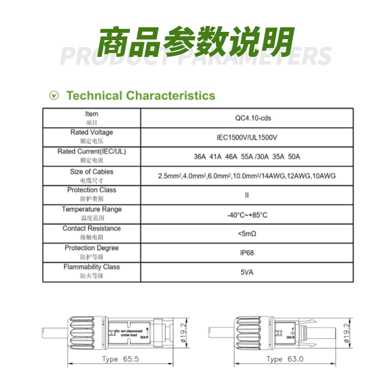 QC4 fast-capable photovoltaic connector (with copper core) () QC4 Y-1500V50A branch connector QC4 fast-capable photovoltaic connector special wrench 1 set of special invoices