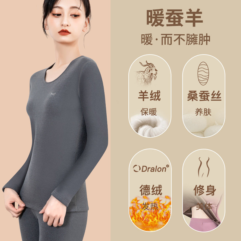 Cat People Duvet Warm Underwear Lady Plus Suede Thickened Winter Fever Thermostatic Wool Silk Autumn Pants Suit-Taobao