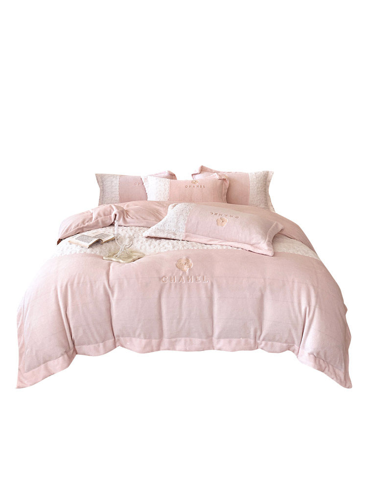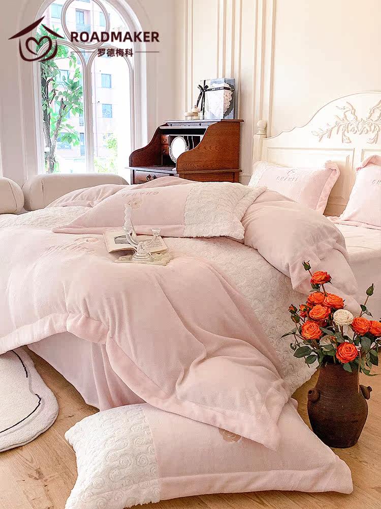 Rhodes Meco autumn and winter small fragrant wind warm milk velvet four-piece set light luxury thickened super soft quilt cover bedding