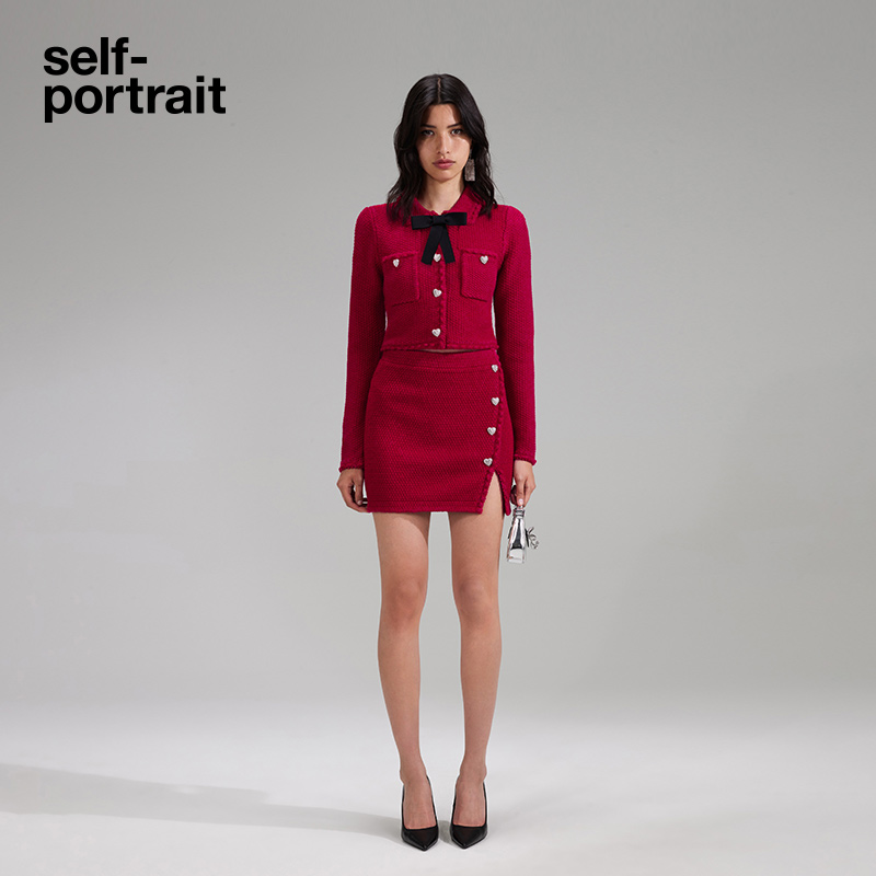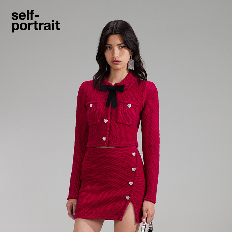 self-portrait 2023 early spring French red blended knitted bow round neck ladies knitted cardigan