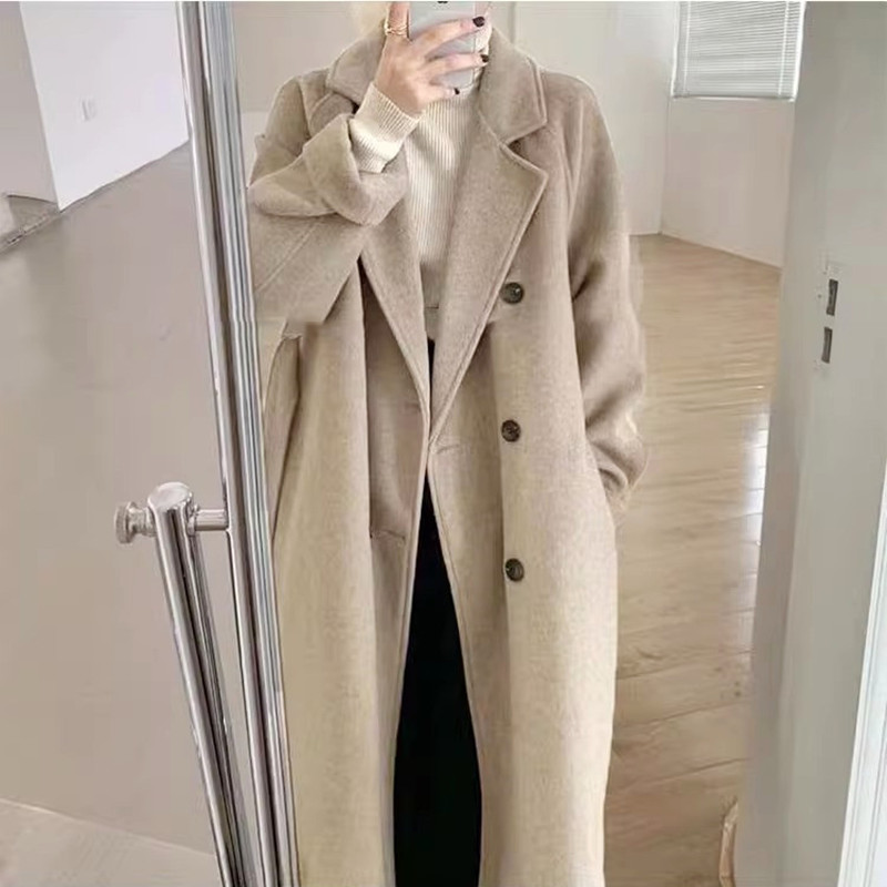 Black Wool Coat Woman Autumn Winter 2023 New Advanced Sensation Medium Long small pair of cashmere sweaters-Taobao
