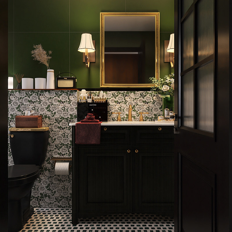 Unnamed hand - drawn French vintage art small tiles green toilet tiles tiles in the kitchen tile tiles floor tiles