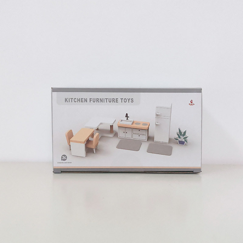 Wooden mini furniture simulation micro scene children past home area Angle game prop toy kitchen living room