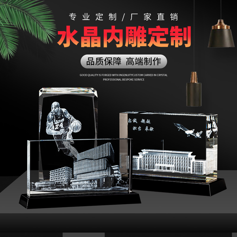 Crystal 3D laser inner engraving custom photo building model Dingding to commemorate the crystal pendulum design production-Taobao