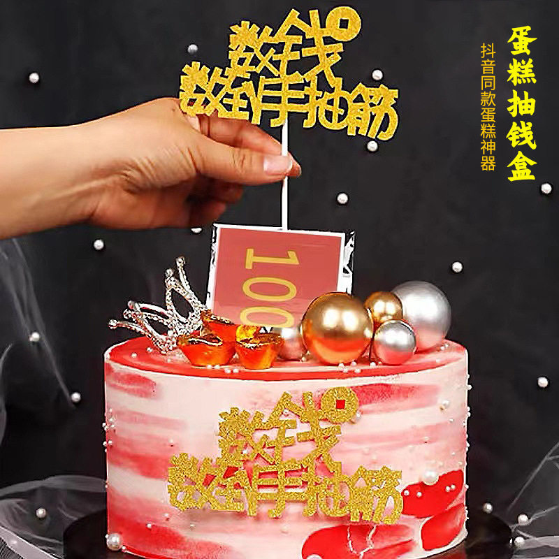 Draw the box cake decoration birthday surprise to draw money to count money to cramped net red creativity