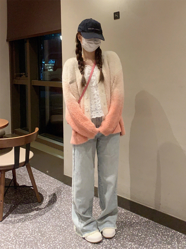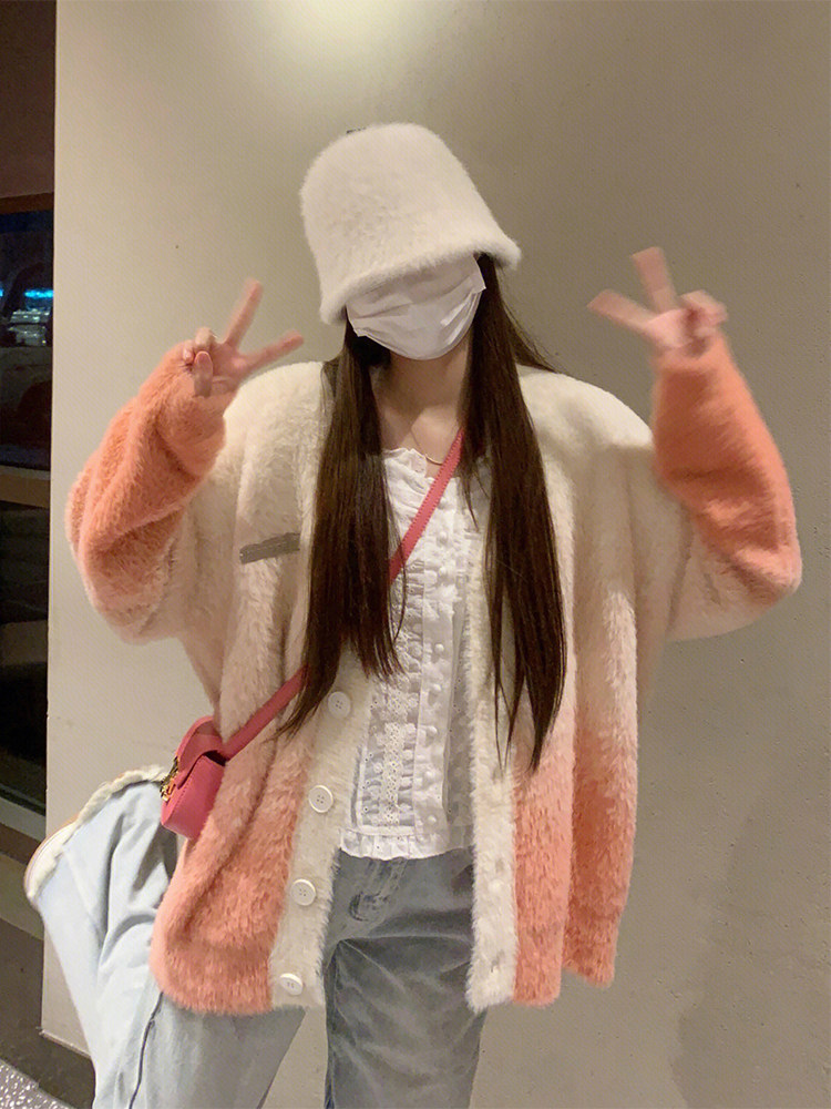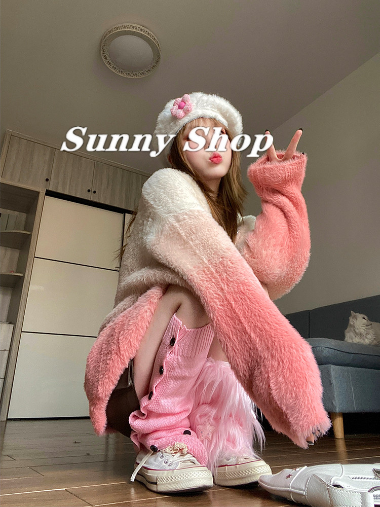 Sunny Shop originally designed knitting pink gradients to imitate sable hair gentle and comfortable skin sweater coat