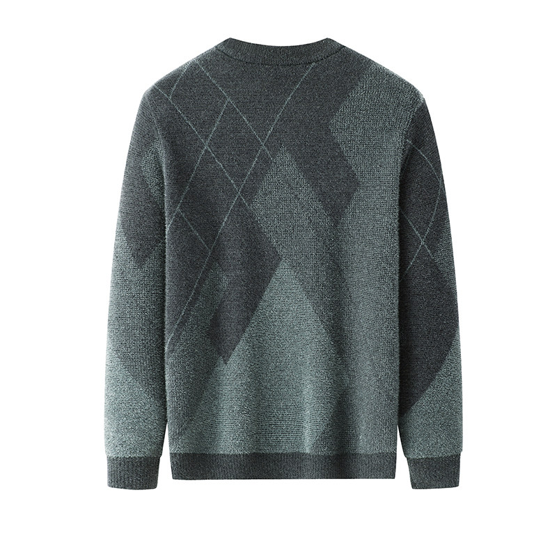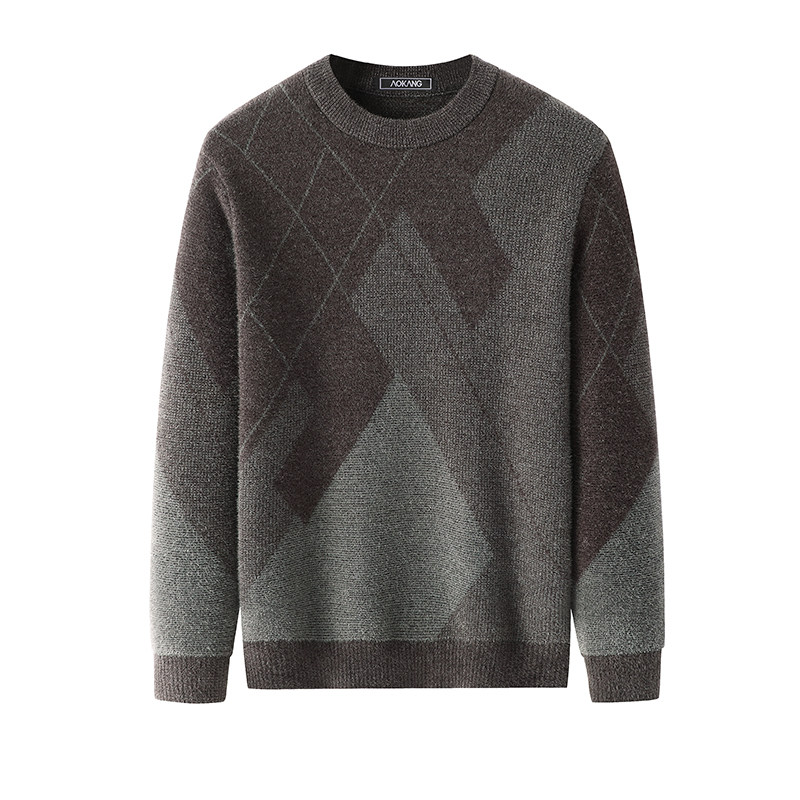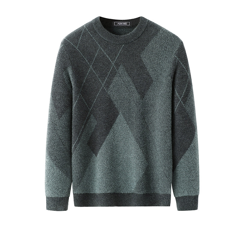 Okonqiu Winter Men's Imitation Water Mink Fleece Thickened Sweater Warm Beating Undershirt Middle-aged Dad Dress Round Collar Needlewear-Taobao