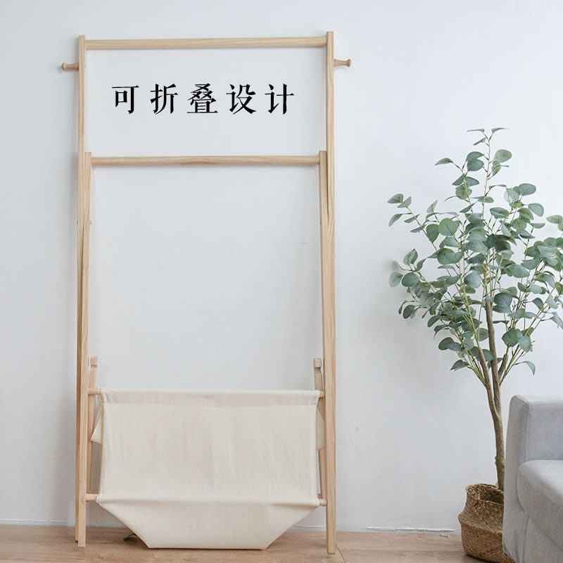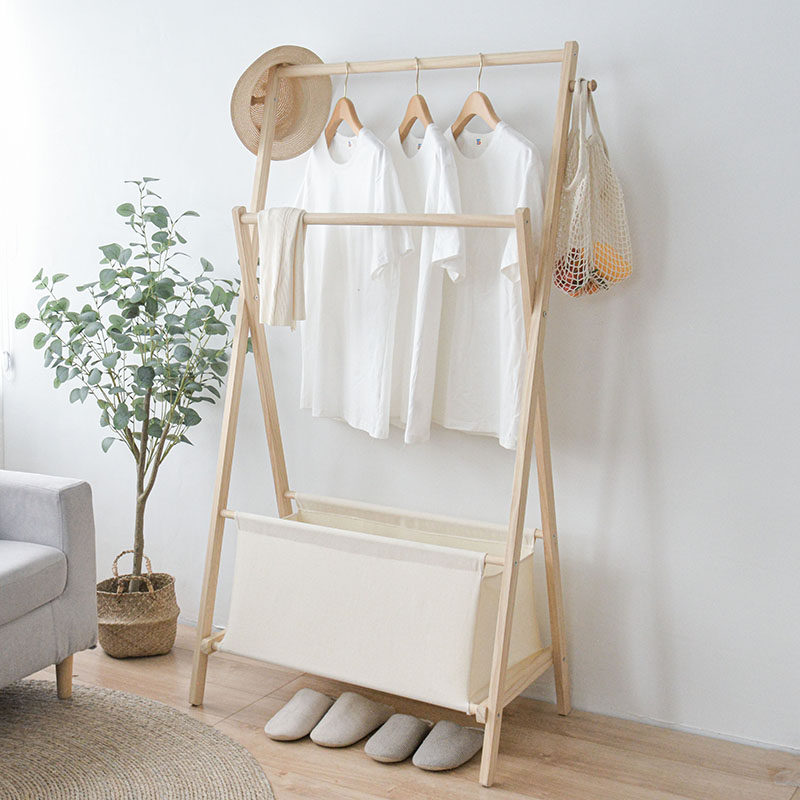 Simple solid wood comes with dirty clothes basket coat rack Nordic famous hotel bedroom living room storage floor clothes rack