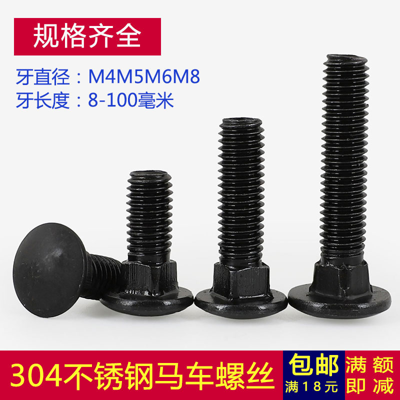 304 stainless steel black carriage semi-round neck black galvanized bridge flat head square screw M4M5M6M8