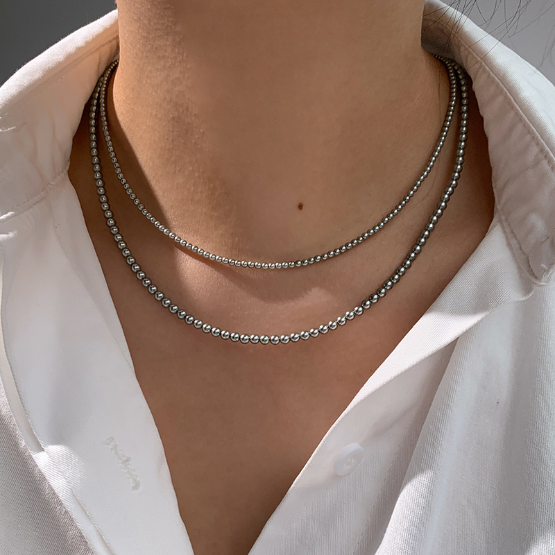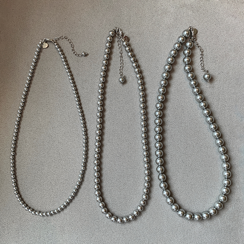 Shijiashina Hemp Platinum Silver Grey Large Creek Ground Black Pearl Necklace Woman Autumn Winter New Sweater Chain Neck Chain-Taobao