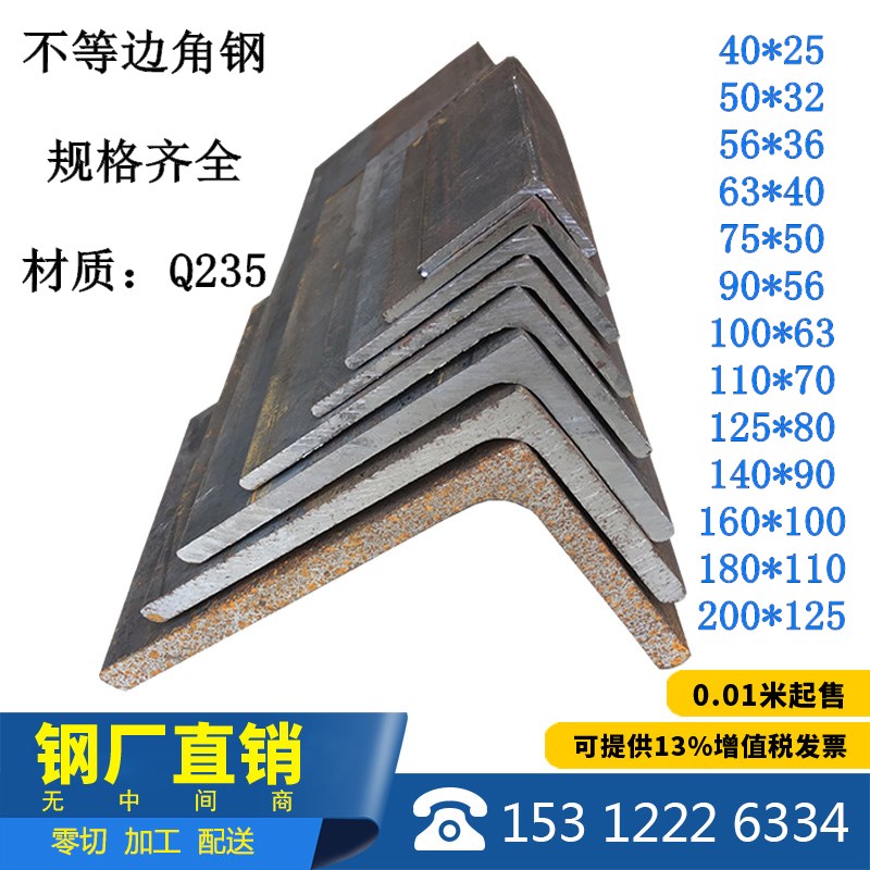 Angle steel material Zero cutting Q235 unequal corners iron 160 * 100 equilateral angle steel 110 * 70 triangular iron 90 * 56