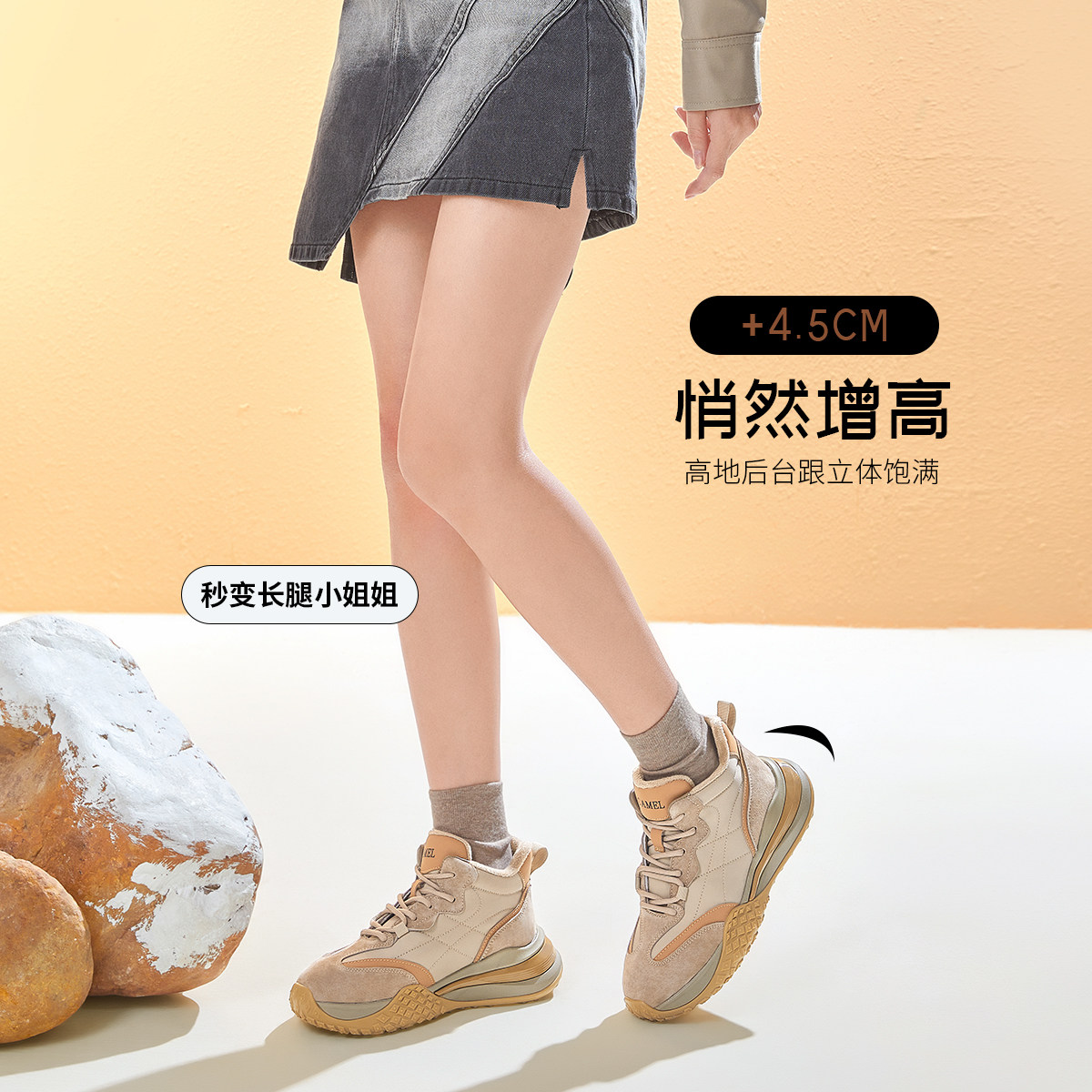 Camel Women Shoes 2023 Autumn Winter New Thick Bottoms Heightening Older Daddy Shoes Women High Help Sneakers Lady-Taobao