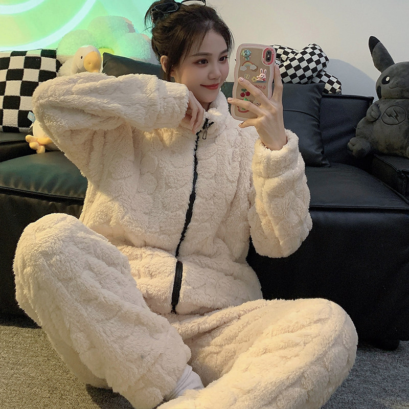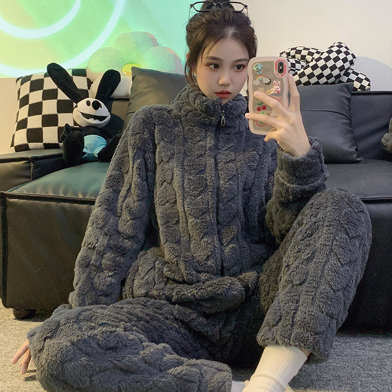 Lady of the Lady's Suite in Winter Coral Velvet Heating Warm Costume High-collar Lax Household Clothes to wear