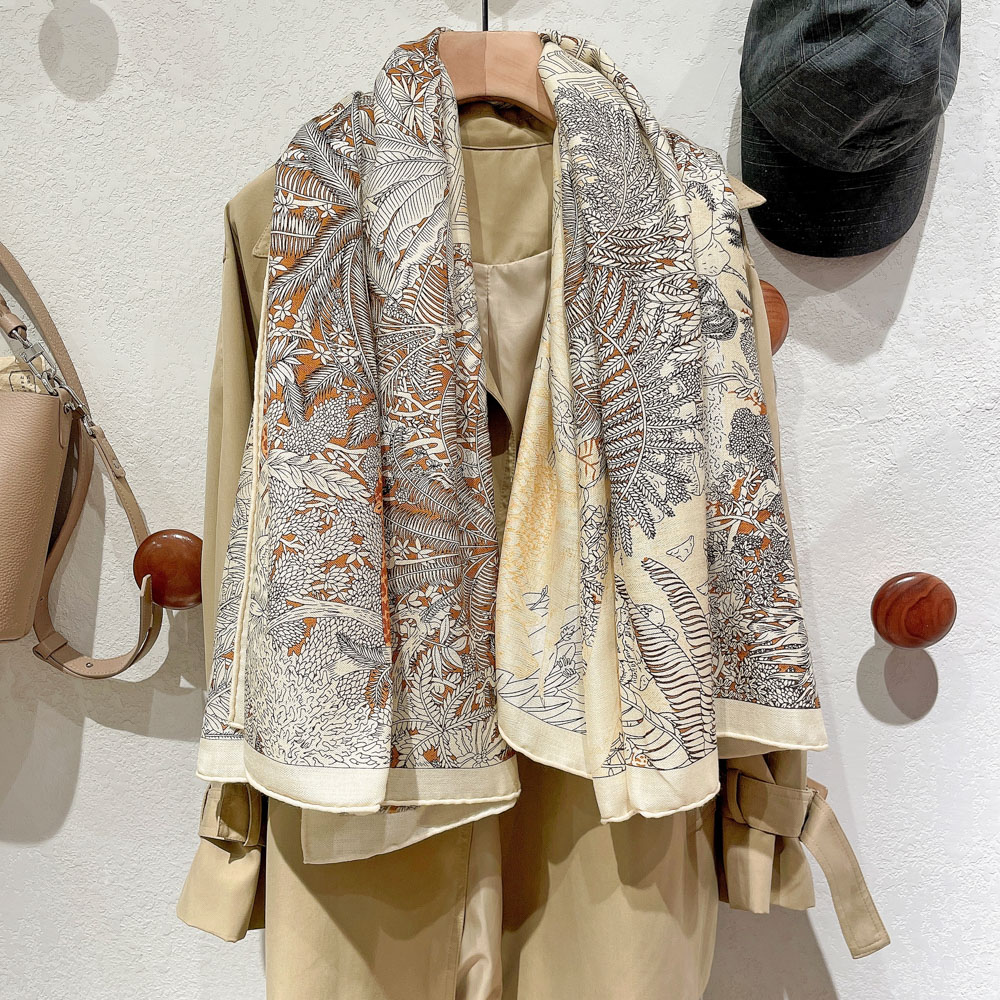 Temperature rice yellow milk white luxury scarf autumn silk wool large square towel warm shawl two-use female