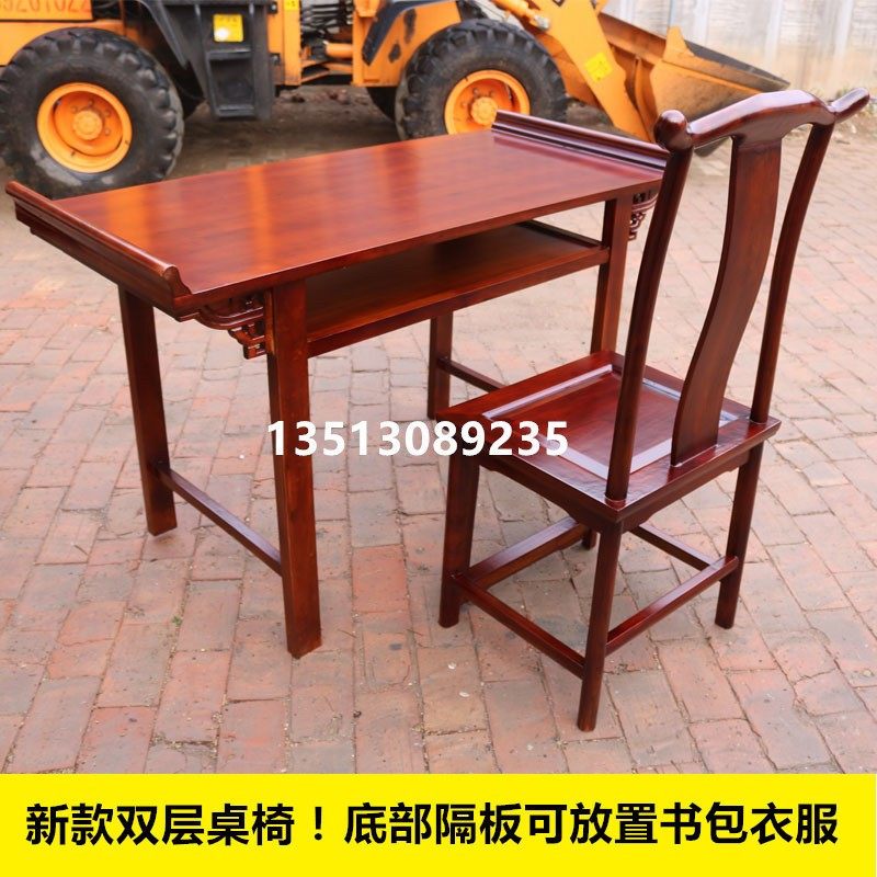 Solid wood desks and chairs antique calligraphy table double-layer Chinese studies desks and chairs double student desk calligraphy and painting table elm painting case special offer
