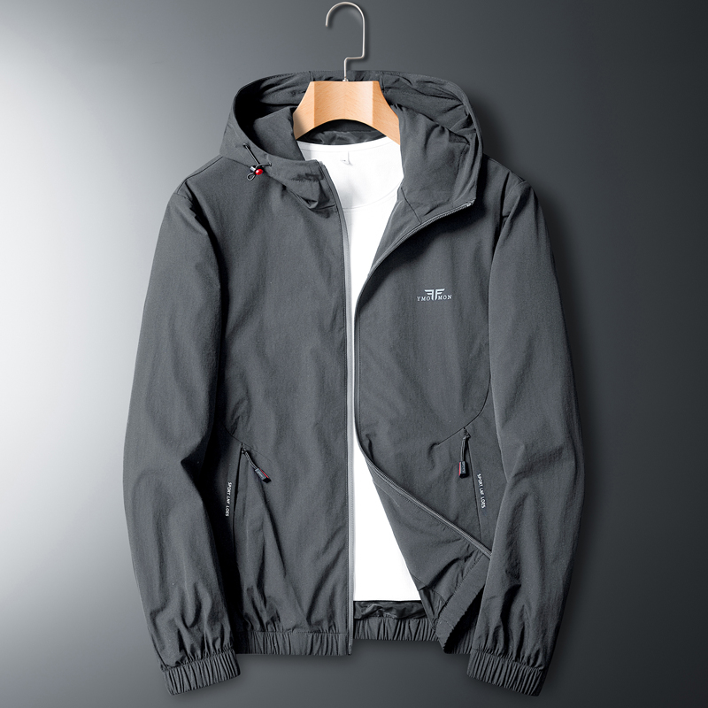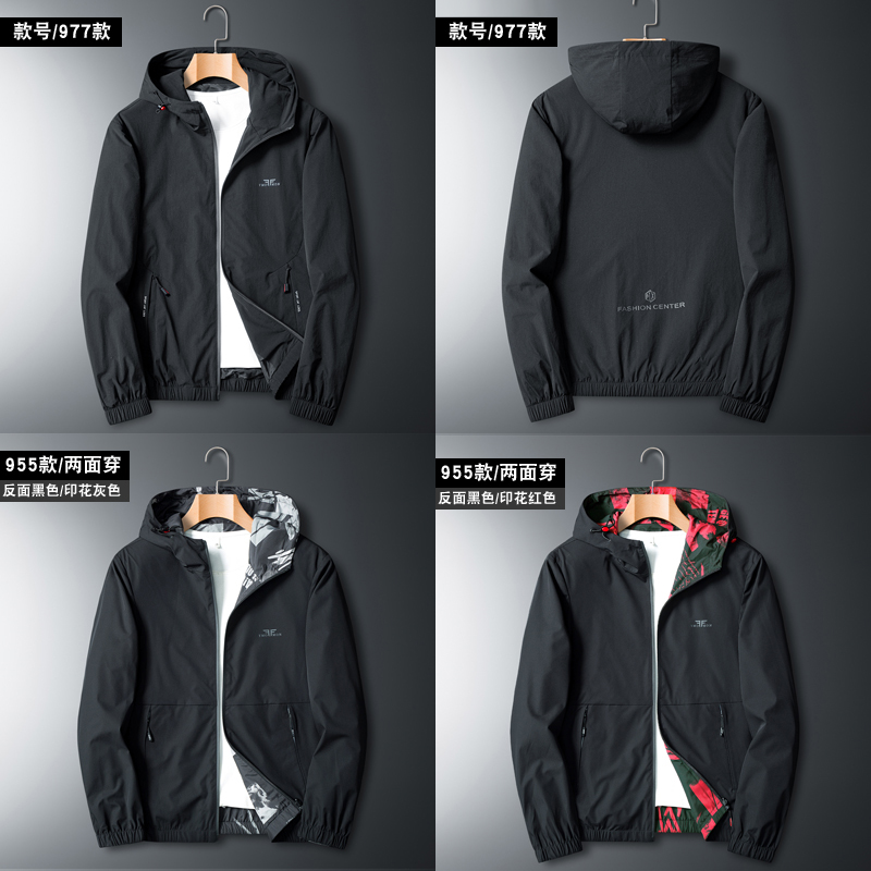 Double-sided jacket male spring autumn thin casual wind-proof trend hundred high-end middle-aged male hood coat