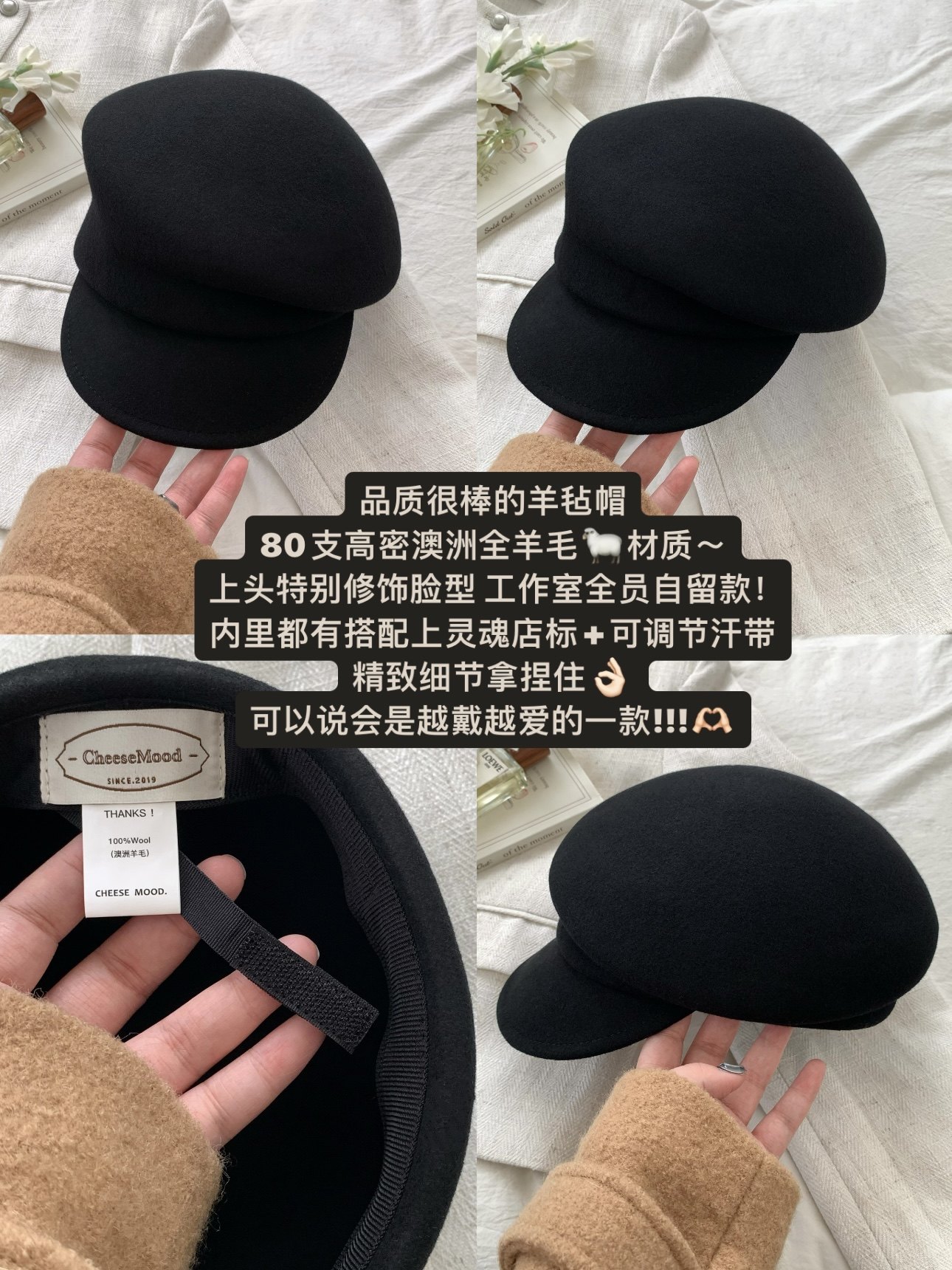 Classic Black Asymmetrical Goat Felt Hat (Spot) Oat oat Asymmetrical Goat Felt Hat White Asymmetrical Goat Felt Hat (spot) Black leather Brim Temperament Newspaper Boy Hat Light Brown Leather Eatery Hat Beige Leather Eatery Goat Felt Hat Kits
