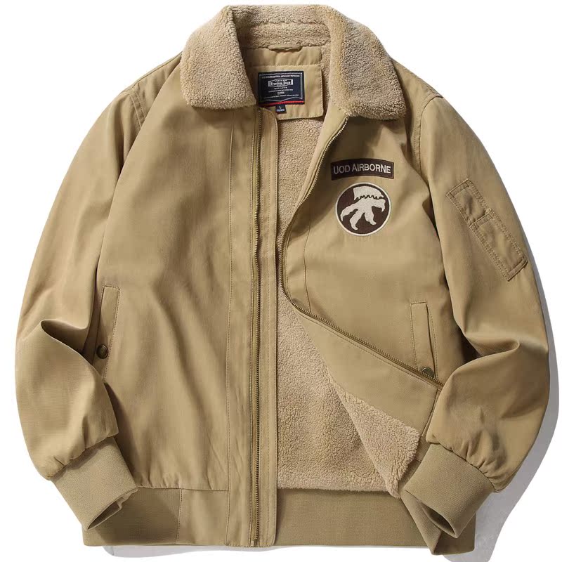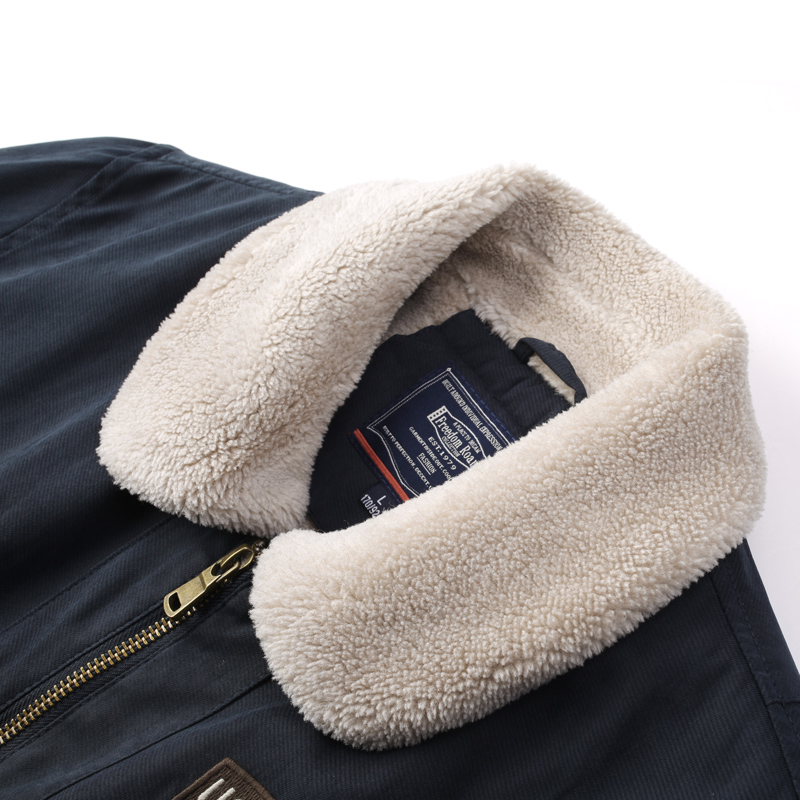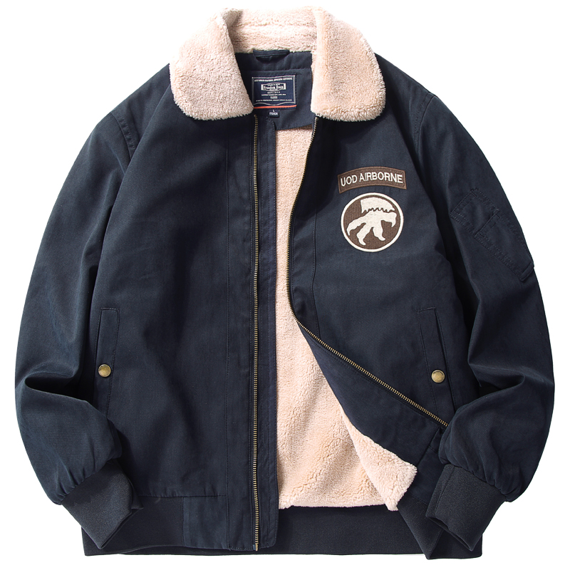 Lamb velvet cotton jacket men's autumn and winter plus velvet thick fur collar pilot staff clothing cotton clothing high-end middle-aged men's jacket