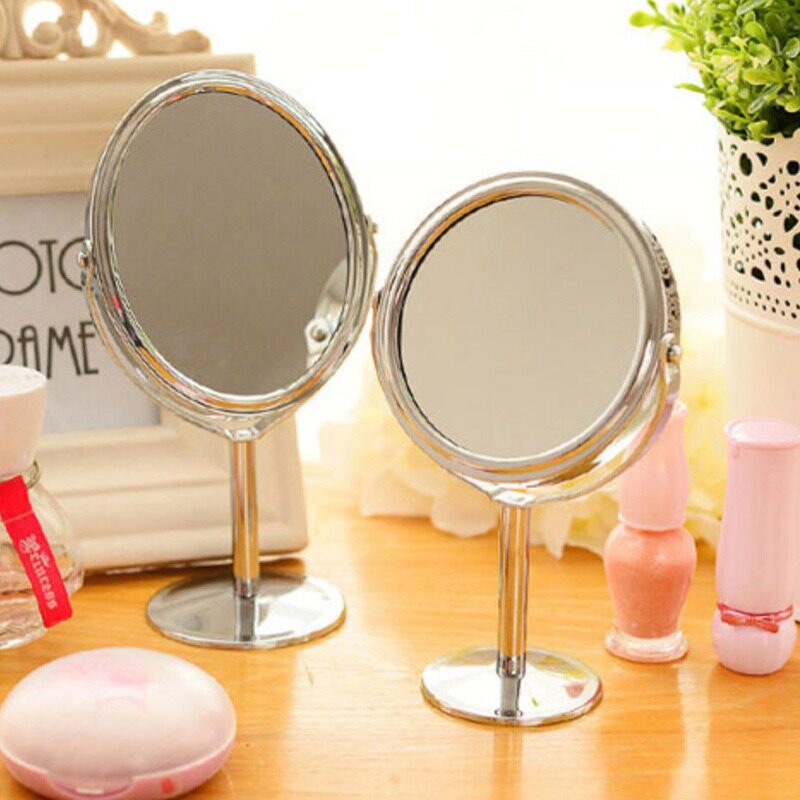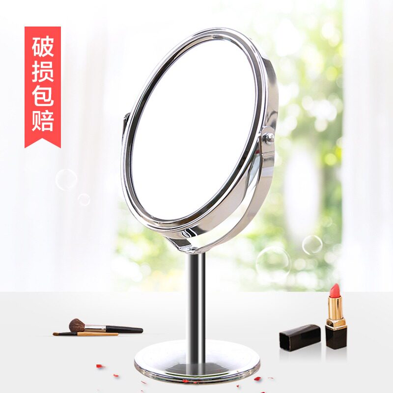 HD double - sided desktop cosmetics mirror mirror dresser stainless steel small mirror office bedroom table rotates